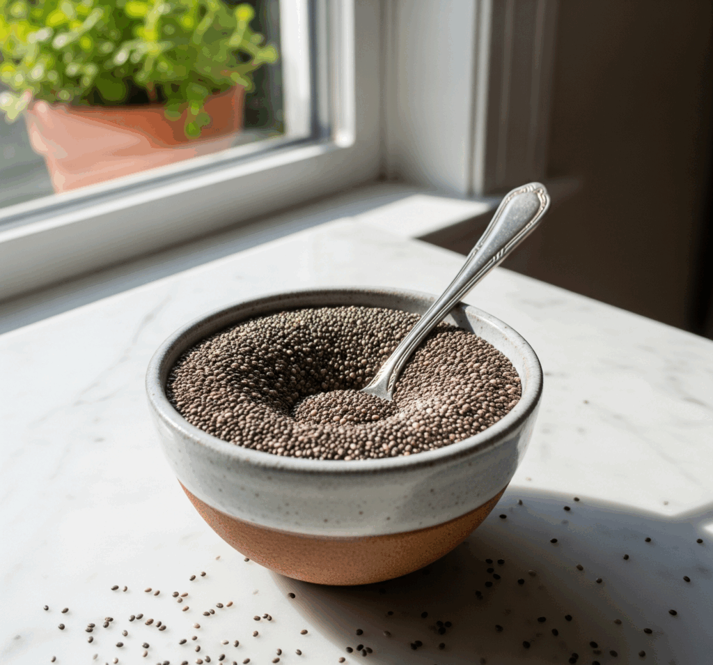Nasiona chia, pełne kwasu alfa-linolenowego i błonnika, działają jak filtr w układzie trawiennym. Obniżają poziom cholesterolu LDL i chronią komórki naczyń przed uszkodzeniami. Dodaj je do owsianki, jogurtu lub koktajli. Namocz przed spożyciem, by ułatwić trawienie.