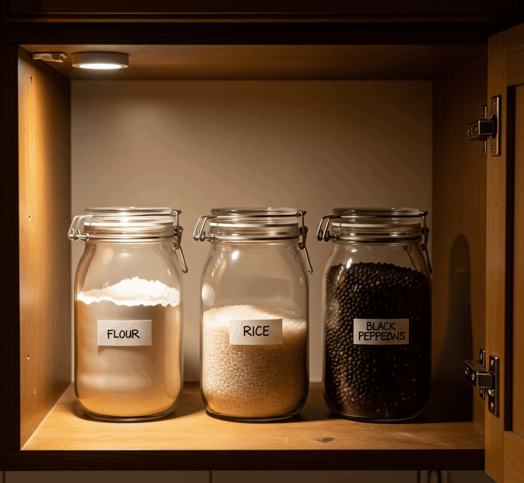 - 2. Używaj szczelnych pojemników: Przechowuj produkty sypkie, takie jak mąka czy ryż, w szczelnych pojemnikach, aby chronić je przed wilgocią i szkodnikami.