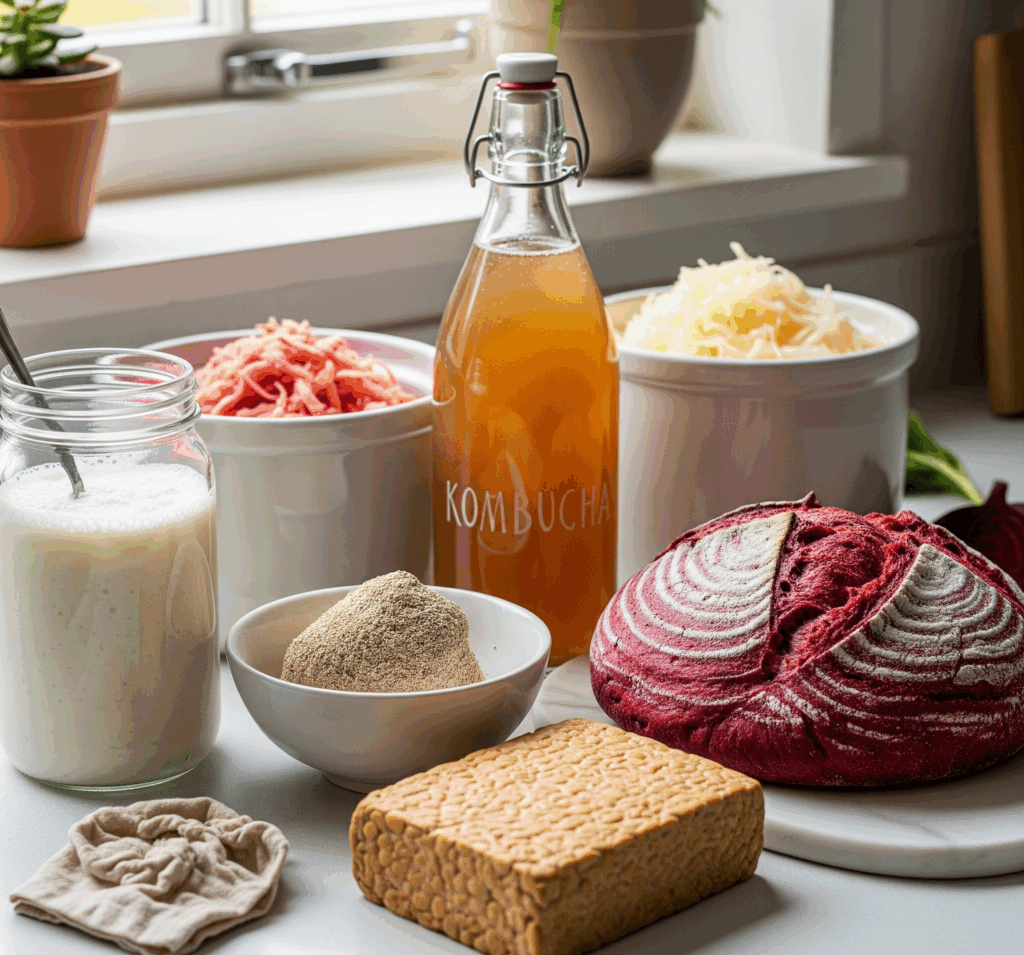 - Zakwas buraczany, kombucha, tempeh — dobre dla mikrobiomu, ale szczepy niestandardowe i zmienne.