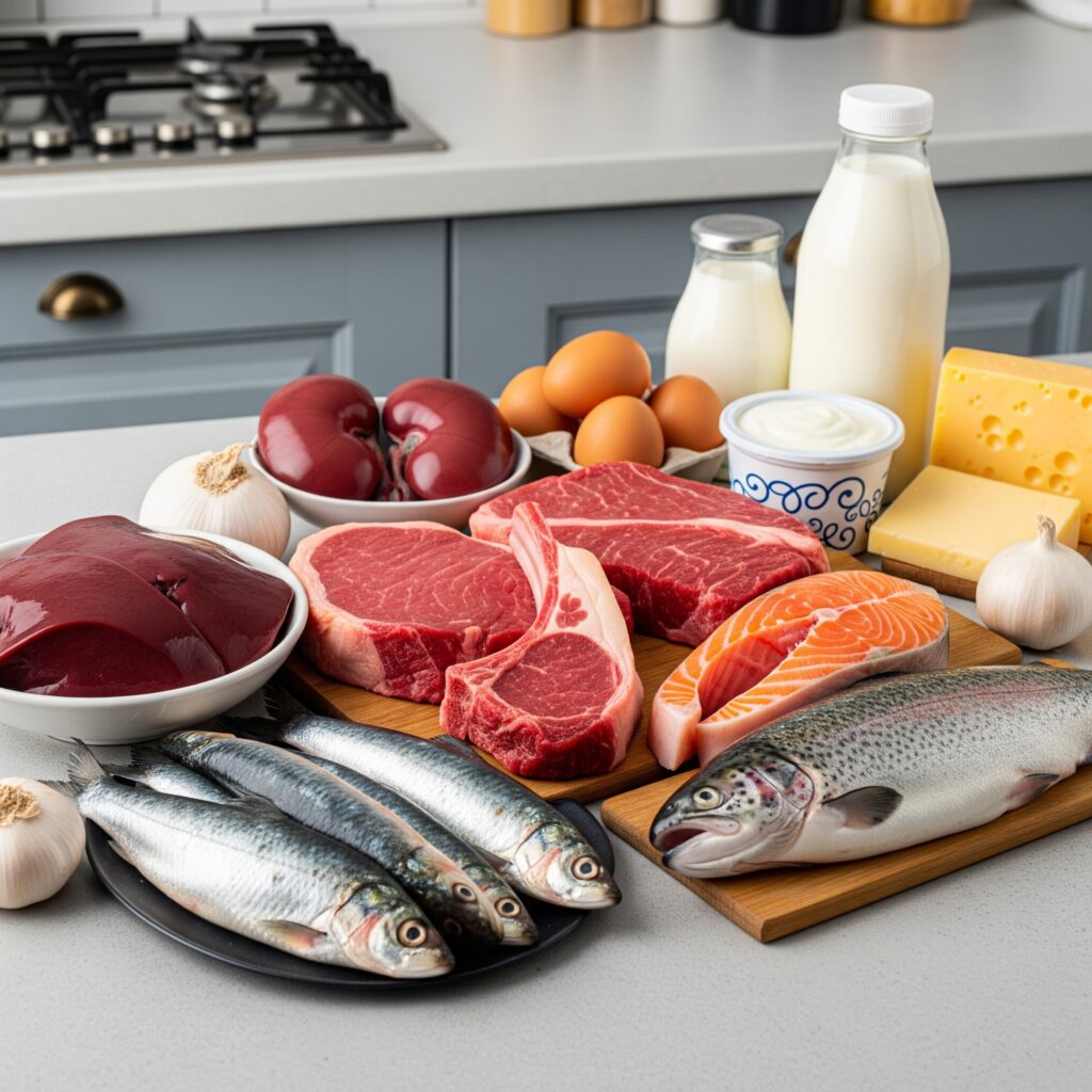 Organizm nie produkuje B12 — musi być dostarczona z zewnątrz, głównie w diecie pochodzenia zwierzęcego.
